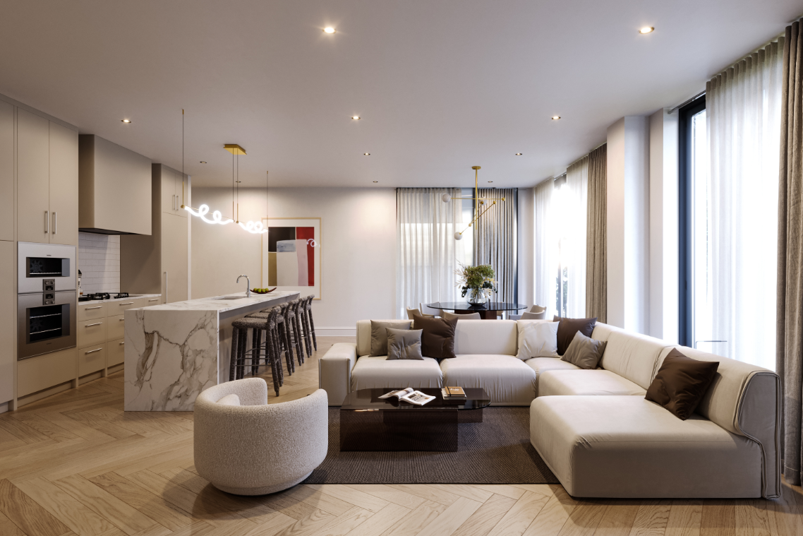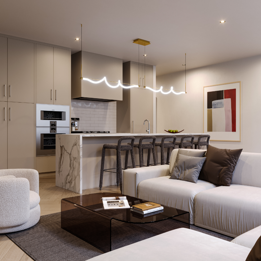 The design ethos of The Rhodes is a true timeless classic, with a modern edge and convenience. Each residence has a range of finish offerings that allow homeowners to create spaces that are curated, beautiful and specific to their home and taste. The experience of each Rhodes residence is designed to feel luxurious and grand, while remaining private and bespoke.